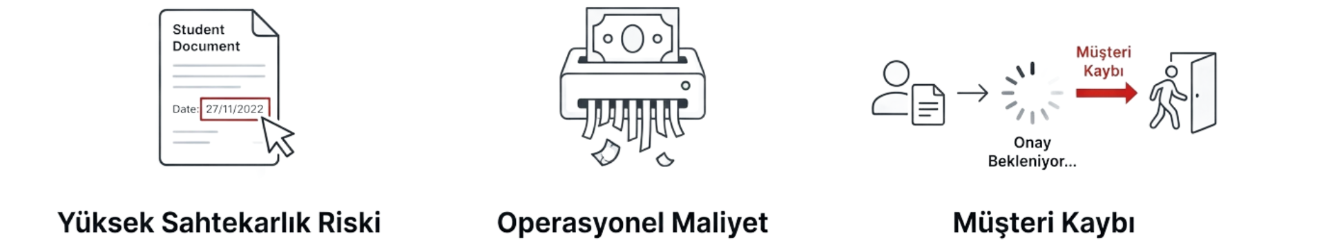 Ağır Operasyonel Maliyet: Her belgeyi onaylamak için ayrılan personel, ekibinizi stratejik işlerden alıkoyar ve verimliliği düşürür.